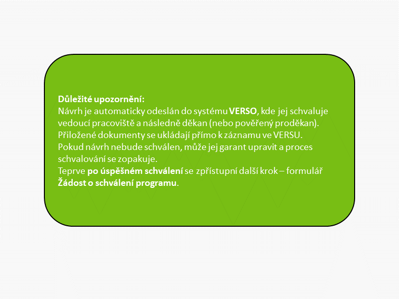 Proces přípravy návrhu i podání žádosti o udělení mikroakreditace probíhá plně elektronicky prostřednictvím univerzitní aplikace Správa žádostí. Tento systém zajišťuje jednotný oběh dokumentů, formální kontrolu i následné projednání žádostí v souladu s metodickým pokynem rektora.
